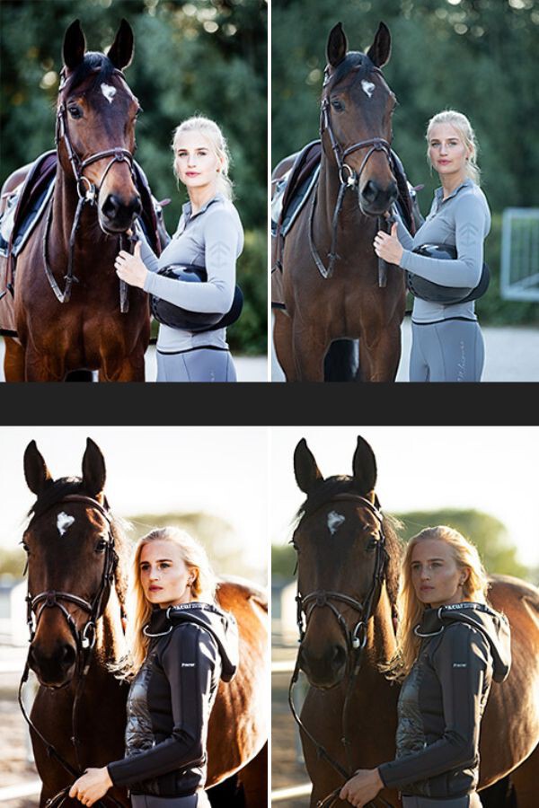 Mit diesem Bundle gibst du Bildern mit einem Klick einen modernen, kontrastreichen Look. Egal ob auf dem Reitplatz bei praller Mittagssonne, beim Putzen auf der Stallgasse, bei Gegenlicht zum Abend oder in der gefürchteten dunklen Reithalle.